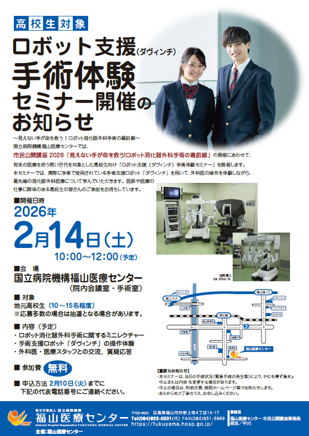高校生対象 ロボット支援手術体験セミナー開催のお知らせ