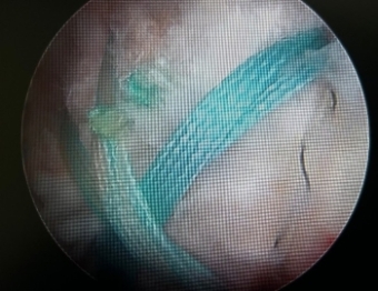 難治性肩関節周囲炎(五十肩)により肩関節が固まってしまう凍結肩に対してはサイレントマニプレーションにより上肢麻酔下に徒手授動を行っています。重度の凍結肩に対しては全身麻酔下に関節鏡下関節包全周性解離を行い、肩関節機能の早期回復に努めています。